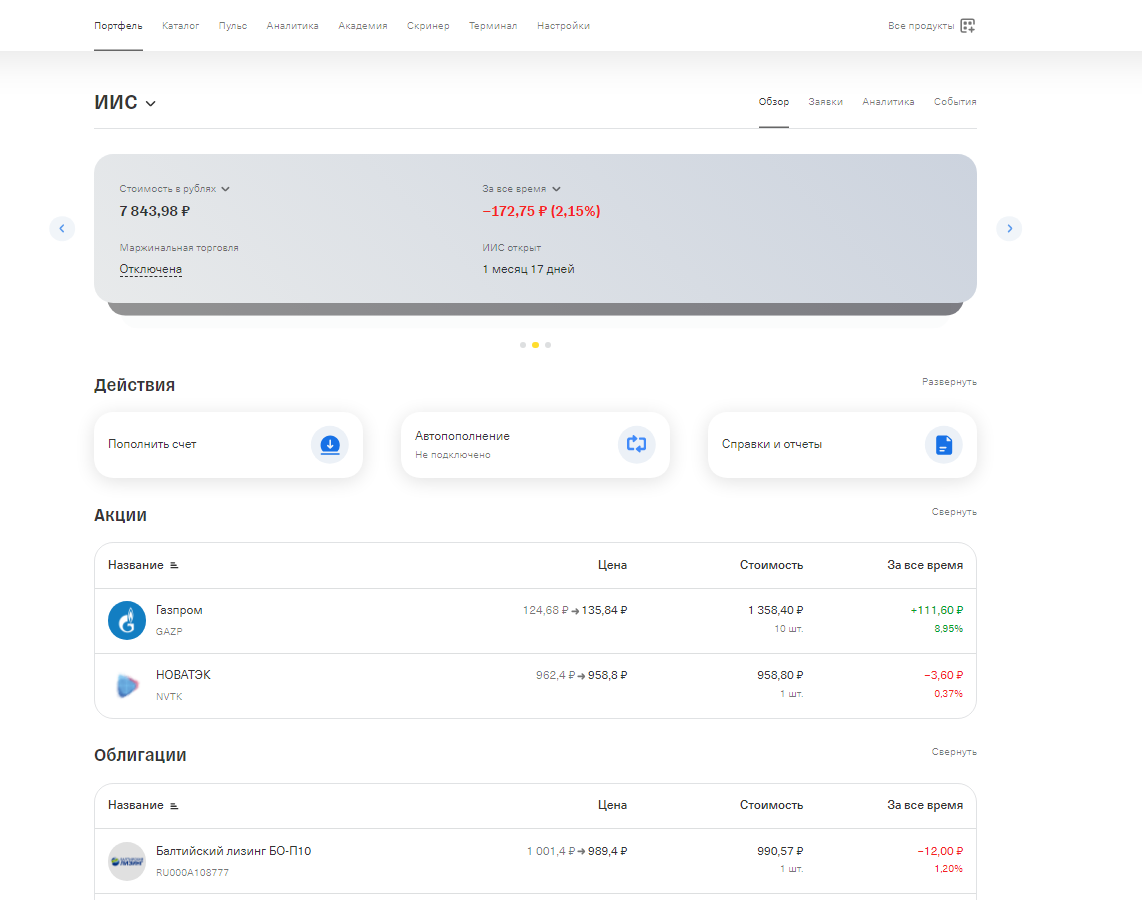 У меня тут давеча одна из облигаций подешевела аж сразу на 200 с чем-то рублей. Переживал на эту тему. В целом это оказалось что из-за того, что дальше дивиденты, в смысле купоны, будут уже раз в квартал не по 37 рублей, а по 25. Что все-равно в год дает 100 рублей. Ну в общем я купил еще две штуки таких. Внес полторы, чтобы, стало быть. было ровное число тысяч в смысле взносов, и купил еще две этих облигации. И теперь мой портфель выглядит так: И в процессе написания этой статьи я внезапно осознал что это же классическая спонтанная покупка. Как прям в учебнике. Еще и с намеком на азарт и лудоманию, ах, мол. подешевело? Надо брать значит. Впрочем получается вроде повыгоднее чем ОФЗ те же. Так что вряд ли прям прогадал. Скорее прогадал с первой покупкой, когда за тыщу. В общем вывел мудрость. Если купон меняется - то и брать надо на смене купона. А не на последнем максимальном, как я это сделал. Век живи, как говорится, век учись, да. Через две неделю будет внесено десять тыщ, перв
