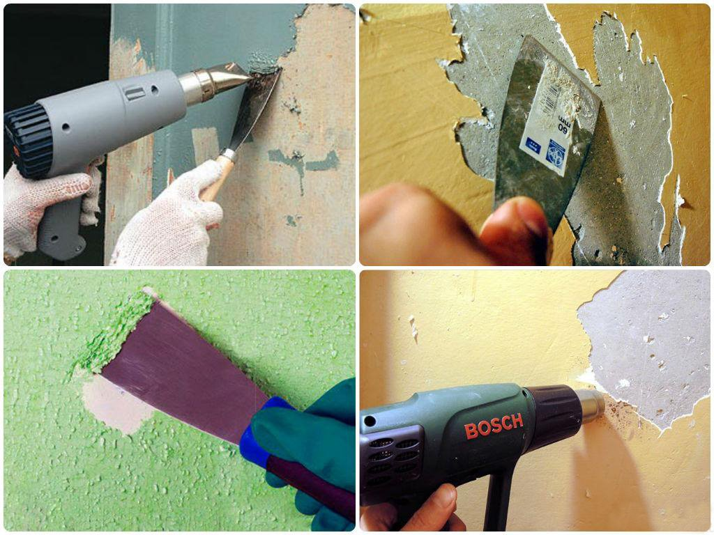 3. Термическое воздействие. Рекомендуется использовать строительный фен или тепловую пушку для нагрева краски, что позволит легче ее удалить.