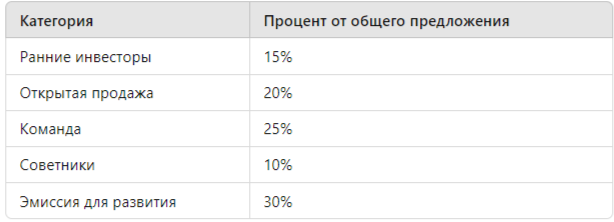 - Распределение токенов — кому и когда достанутся токены, например, инвесторам, команде или советникам.