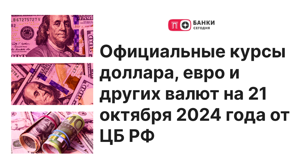 Официальные курсы доллара, евро и других валют на 21 октября 2024 года от ЦБ РФ | BanksToday