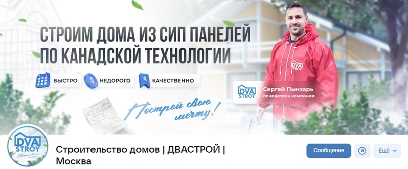 Ниша: строительство домов Сайт: https://dvastroy.ru/ Группа Вконтакте: https://vk.com/dvastroy Срок работы: более года. “ДваСтрой” — строительная компания Сергея Пынзаря, специализирующаяся на возведении каркасных домов из SIP-панелей по канадской технологии. Главные преимущества — гарантии сроков, помощь с ипотекой и собственное производство. Бизнес функционирует более 8 лет в г. Москва. Основатель проекта, Сергей, является бывшим участником российского телешоу ДОМ-2. И он, и его жена активно ведут социальные сети. Управляющий партнер компании, Василий Тодерика, тоже известен участием в данной программе. Его отзыв — тут. Строительство домов — одна из самых дорогих ниш, особенно в Москве. Однако нам удалось найти правильный подход и заполучить большое количество качественных лидов по низкой цене. Цель: поднять число обращений и снизить стоимость заявки. Как мы это сделали — читайте далее. Первый шаг — совместный брифинг. Ответы клиента указали на: Далее мы приступили к поиску конкурен
