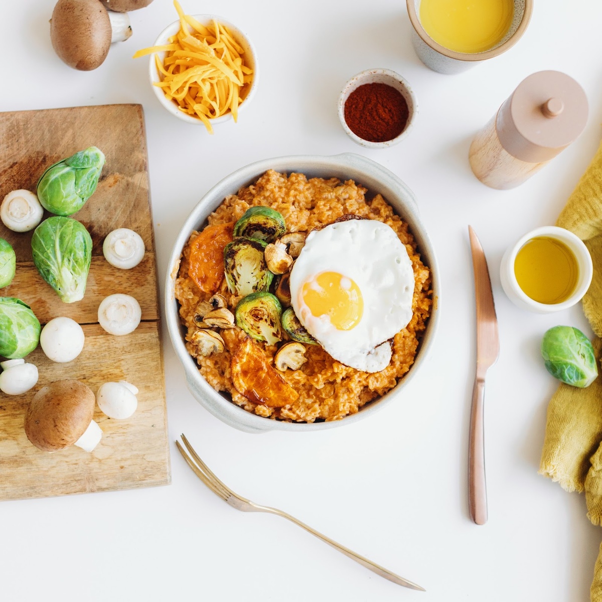 Сытный, необычный и простой завтрак или ланч за 15 минут — всё реально благодаря Nordic! Для этого рецепта лучше взять более крупные овсяные хлопья Nordic Финский геркулес, хлопья Ленивая овсянка Nordic или Nordic Jumbo Oat Flakes без глютена, чтобы основа боула получилась более текстурной. Добавляйте в избранное! Ингредиенты: - Овсяные хлопья Nordic - Яйцо - Лук-шалот - Чеддер - Брюссельская капуста - Шампиньоны - Соль, перец Приготовление: 1. На сковороде обжарить лук на среднем огне до мягкости. 2. К луку добавить овсяные хлопья Nordic, соль и воду. Довести до кипения уменьшить огонь, готовить в течение 12 минут, периодически помешивая. Добавить тёртый сыр и чёрный перец. 3. На отдельной сковороде обжарить брюссельскую капусту до мягкости. В центр сковороды аккуратно выпустить яйцо (или несколько — по количеству порций). Накрыть крышкой и готовить до застывания яйца. 4. Выложить овсянку и топинг в боул и подавать!