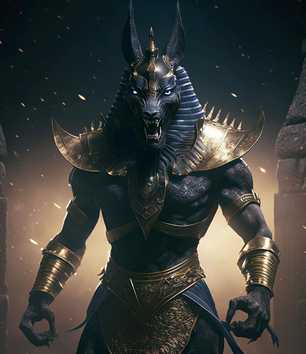 Анубис — древнеегипетский бог, связанный со смертью и погребальными обрядами. Обычно его изображают в виде человека с головой шакала или полностью в образе шакала, что символизирует его роль в охране могил и загробной жизни. Он считался защитником усопших, проводником душ в загробный мир и покровителем погребальных церемоний. В мифах он играл важную роль в суде над умершими: сердце взвешивалось на весах вместе с пером Маат, чтобы определить судьбу души. Мифология Жена Сета — Нефтида — полюбила Осириса и, приняв облик его супруги Исида, зачала от него сына. Опасаясь гнева мужа, Нефтида бросила младенца в камыши, где его нашли и вырастили Исида и её помощники. Вместе с Исидой Анубис искал тело Осириса, охранял его от врагов и иногда участвовал в его погребении или суде. Когда Сет был осуждён за убийство Осириса и превращён в пантеру, боги решили его сжечь. Анубис снял шкуру у Сета и надел её на себя. Затем он выжег на шкуре знак с помощью раскалённого железа. В память об этом событии жре