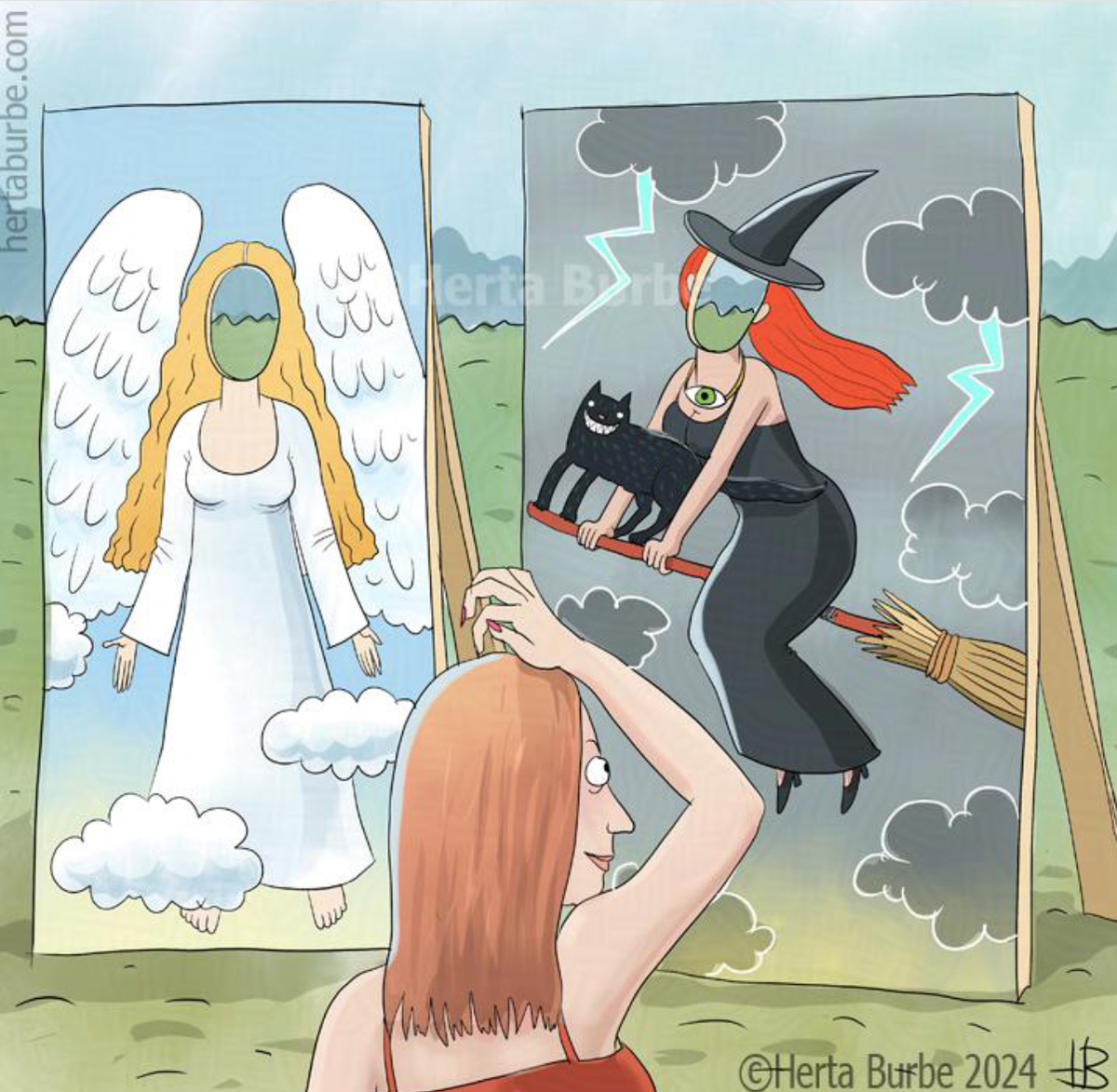 В преддверии самого страшного праздника в году - Хэллоуина - так и хочется поделать каких-нибудь подборок о чем-нибудь жутком или мистическом. Кстати говоря, один из самых распространенных костюмов на Хэллоуин - ведьминский, и я подумал, что эта тема как раз отлично подойдет для подборки на конец октября. Так сегодня вас ждут смешные зарисовки про шабаши, метлы и магические заклинания. Надеюсь, что вам понравится! Литовская художница Герта Бурбе (Herta Burbė) в своих комиксах частенько использует разных жутких персонажей - будь то вампиры, зомби или те же ведьмы. А в одном из недавних комиксов Герта решила поставить свою героиню перед выбором, к какой стороне примкнуть - светлой или темной. В серии комиксов War and Peas (англ. «Война и Горох», созвучно с «War and Peace» - «Война и мир») дуэта немецких авторов Элизабет Пич (Elizabeth Pich) и Джонатана Кунца (Jonathan Kunz) один из часто используемых персонажей - это забавная ведьма, которая то и дело попадает в разные курьезные и порою