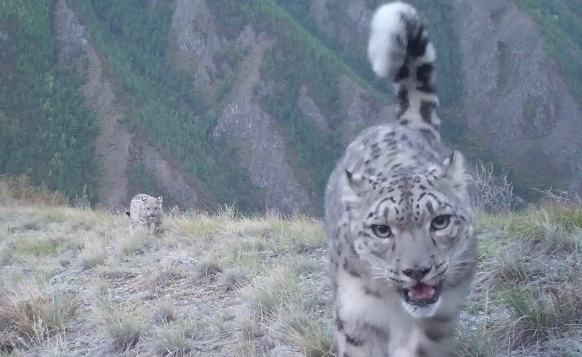 В Красноярском крае зоологи Саяно-Шушенского заповедника получили свежие данные с автоматических фоторегистраторов, установленных на охраняемой территории. Эти материалы позволяют говорить о пополнении популяции снежного барса (снежного леопарда) на юге Сибири. В заповеднике напомнили, что завезенная в Красноярский край по федеральной программе в 2018 году самка родила двоих малышей уже в 2020-м, а два года спустя появились на свет еще трое. В нынешнем сезоне родились, судя по записям автоматических регистраторов, двое котят. Как полагают сотрудники заповедника, это произошло в мае или июне. Осенью самка с двумя отпрысками попала в объектив фотокамер. Ранее мы показывали видео, как снежные барсы засыпают в обнимку. Арсений Зотов