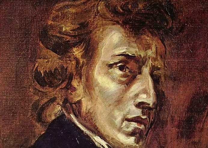 Незаконченный портрет Шопена работы Делакруа — одно из самых необычных изображений композитора. Перед зрителем бледный герой с суровым, энергичным лицом в полуанфас, освещенным только с одной стороны. Мощными мазками автор портрета создает образ человека с тревогой переживаний на лице. На самом деле речь идет о двойном портрете, разрезанном пополам. Слева должен был находиться играющий пианист. Справа — внимающая музыке Жорж Санд с шитьем в руках. В 1838 году они еще были вместе и много общались с Делакруа. Это она, Аврора Дюдеван, известная как Жорж Санд, познакомила художника со своим другом Шопеном. Про портрет известно немного. Трудно сказать, был ли он кем-то заказан или художник писал картину по собственному желанию. Сохранились только сведения, что Делакруа раздобыл специально рояль, чтобы писать Шопена у себя в мастерской, но до изображения инструмента дело так и не дошло. Двух безупречных романтиков, Делакруа и Шопена, объединял неукротимый творческий темперамент, жажда творче