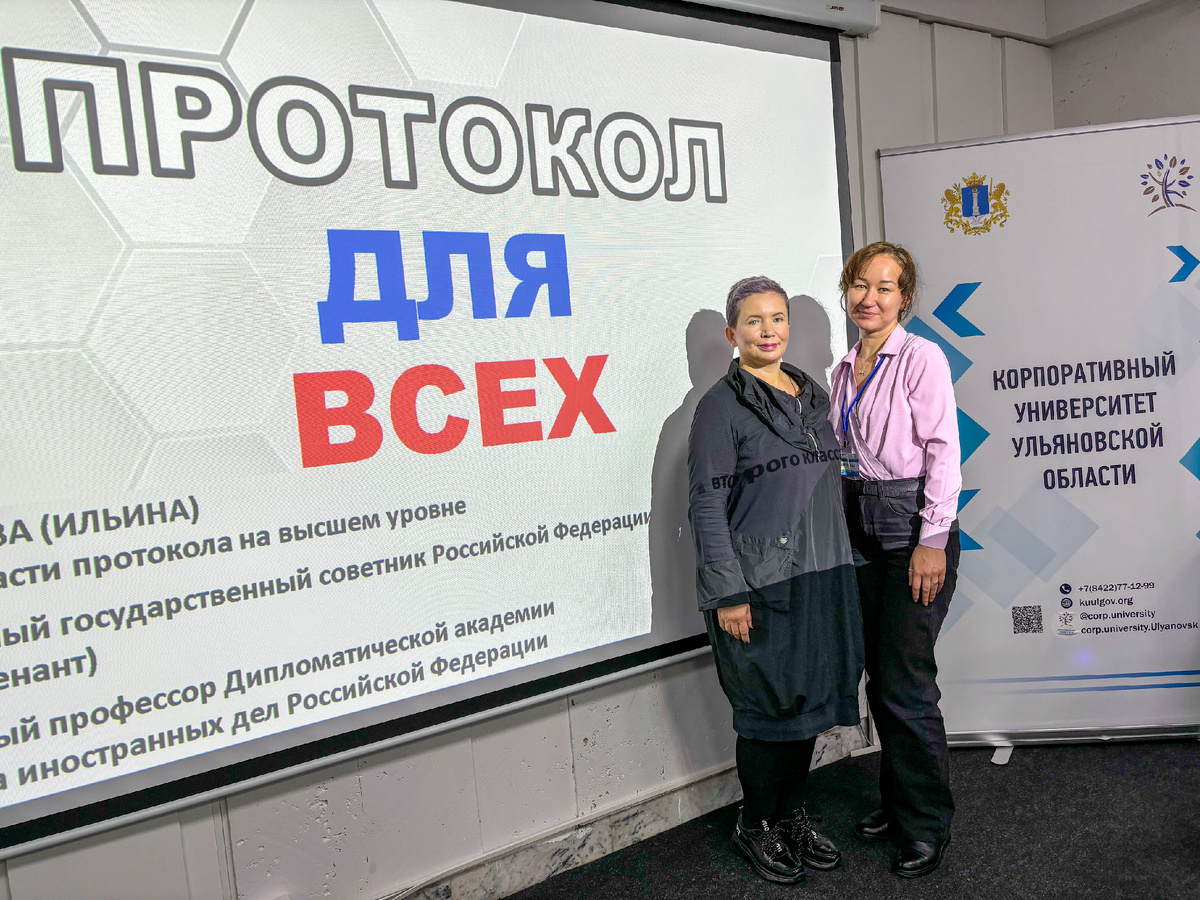 В Корпоративном университете Ульяновской области завершилась программа повышения квалификации «Деловые коммуникации и протокол», и как руководитель корпоративных коммуникаций и PR, хочу отметить, насколько ценной была эта программа для всех участников. Особую значимость придавало то, что обучение вела Анна Михайловна Романова, государственный советник РФ второго класса и приглашенный профессор Дипломатической академии МИД России. Что особенно ценно, Анна Михайловна — практик, и каждый теоретический блок сопровождался живыми примерами из её профессионального опыта. Это помогло участникам не просто усвоить материал, но и увидеть, как он применяется на практике, будь то организация приёма иностранных делегаций, распределение протокольных функций, аккредитация, выбор подарков или расстановка столов на официальных приёмах.