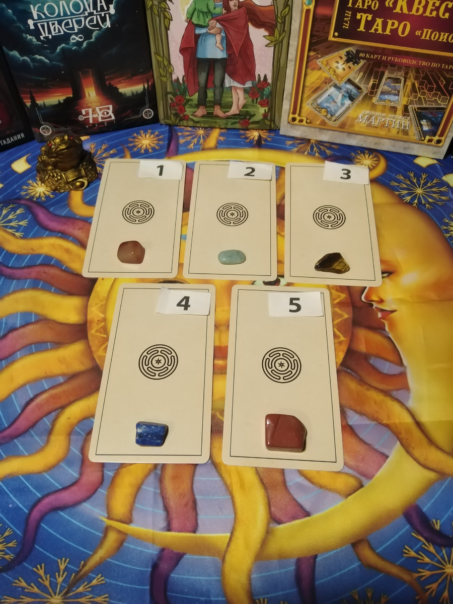 🔮 Расклад на пять вариантов. Выбирайте себе камушек - Желтый (1), Голубой (2), Тигровый (3), Синий (4) или Красный (5) - и будем смотреть, какой непройденный урок из прошлой жизни Вы проходите в этой. Смотрите все, что "подмигивает". В ходе расклада стали открываться разные стороны вопроса, поэтому взяла несколько колод. Смотрим на оракуле Сад Гекаты, мак-колоде Меня не волнует, Таро солнца и Викканском оракуле теней.
