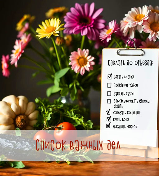 🤔 Давайте проверим: ✅ Уберите всю листву с участка. Не оставляйте её на газоне, чтобы избежать развития грибка. ✅ Подстригите газон, если он успел подрасти. Высота травы под снегом не должна превышать 5-7 см. Для улучшения аэрации почвы пройдитесь по газону вилами. ✅ Засейте пустоты на газоне и подкормите его до наступления холодов. ✅ Защитите молодые растения, высаженные весной и осенью, от морозов. Для этого замульчируйте почву вокруг ствола, а само растение оберните укрывным материалом. ✅ В цветниках обрежьте соцветия поздно цветущих растений и укройте те, которые плохо переносят морозы. ✅ Не забудьте слить воду из бочек, а также переключить поливочные вентили. ✅ Высадите чеснок под зиму. ✅ Избавьтесь от фитофторы. Она чаще всего встречается в теплицах и среди томатов, росших в открытом грунте. Можно использовать химические препараты: железный или медный купорос, бордосскую смесь. Также прекрасно справляются фунгициды: «ФИТОСПОРИН – М» или «Здоровая почва». ✅ Уберите мульчу с огоро
