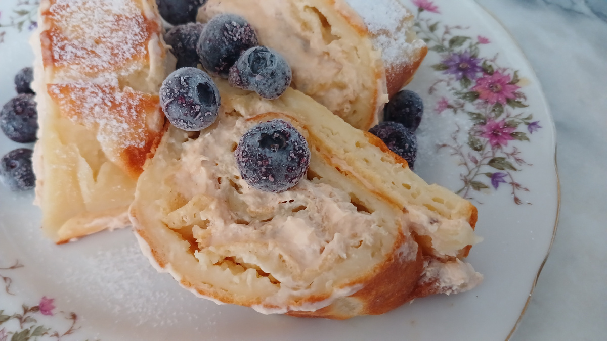 Но для варианта "а ля пирожные" я делаю из этого блина рулет.