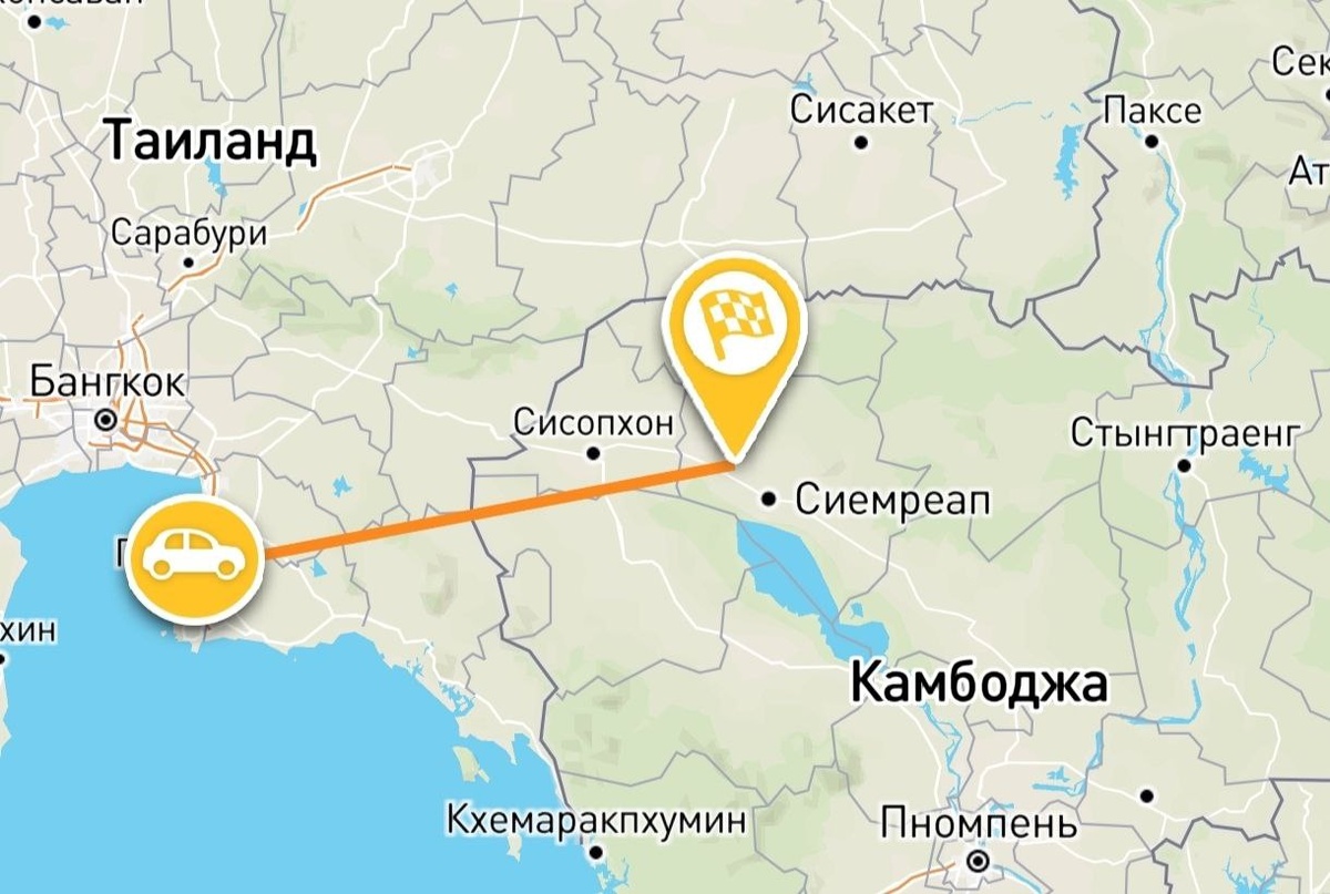 Дорога до границы с Камбоджой после выезда из Паттайи занимает приблизительно 3 часа с учетом пары остановок на 5-10 минут. Расстояние около 220 км.