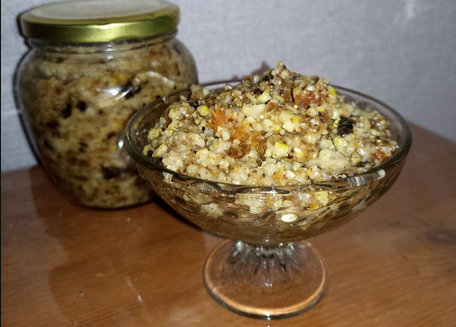 Грецкие орехи и сухофрукты в составе пасты нормализуют уровень холестерина и улучшают работу сердца. Паста укрепляет сердечную мышцу и улучшает кровообращение, что особенно важно для тех, кто страдает от гипертонии.