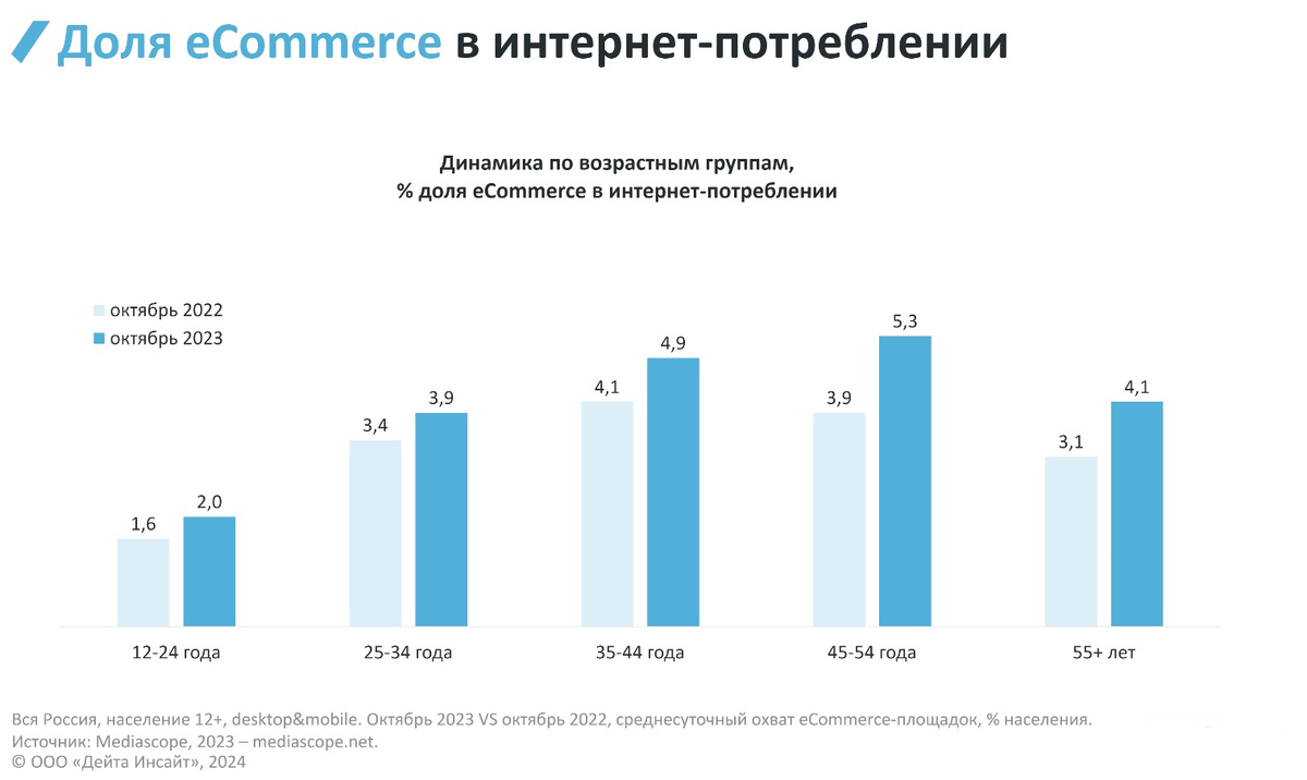 - Доля в онлайн-покупках невелика, но интерес к интернету растет: https://datainsight.ru/eCommerce_2023