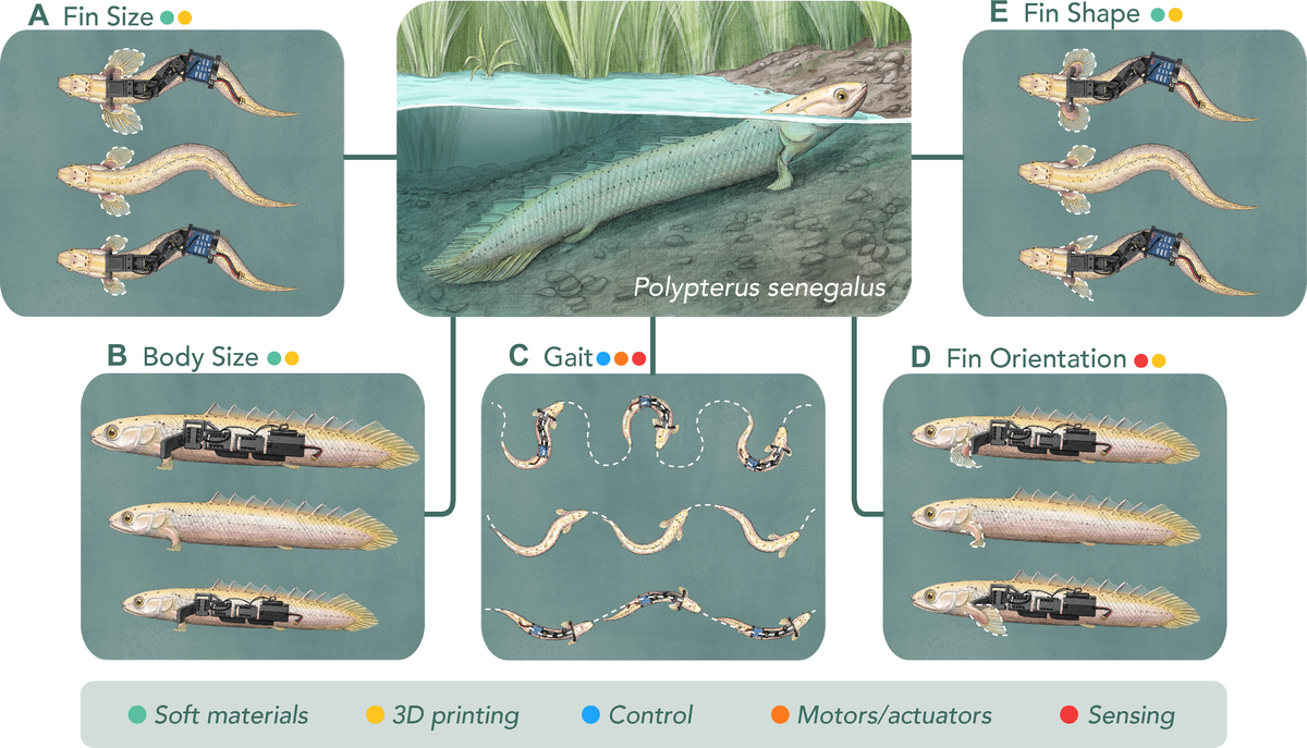 Все мы помним ту самую историю про выход рыбы на сушу, однако этот процесс до сих пор исследуют в деталях. Новый подход в изучении данного перехода предоставила группа Майкла Ишиды из Кембриджского университета: они решили использовать роботов, которые должны повторить движения первых амфибий. Новый маленький робот был вдохновлён рядом рыб, способных к передвижению при помощи плавников, в числе которых оказались сенегальские полиптеры, илистые прыгуны и многочисленные вымершие представители лопастепёрых. Робот должен показать, как именно древние рыбы начали использовать грудные и брюшные плавники для передвижения и их дальнейшей эволюции для поддержания веса. "Поскольку ископаемые свидетельства ограничены, у нас есть неполная картина того, как древняя жизнь вышла на сушу", - сказал ведущий автор исследования доктор Майкл Ишида из инженерного факультета Кембриджа. - "Палеонтологи изучают древние окаменелости в поисках информации о строении тазобедренных суставов, но есть пределы тому, ч