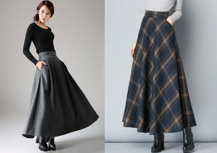Шерстяная юбка – пожалуй, самый теплый из вариантов. Универсальные расцветки – черный, белый и серый. Они подходят практически всем. А вот другие расцветки подбираются индивидуально.