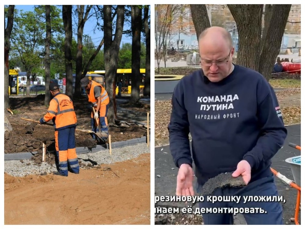 Общественники заявляли, что работу по обустройству детского городка в парке 30-летия Победы идут с нарушениями. «Мы видим нарушение технологии установки малых архитектурных форм. Сначала здесь нанесли резиновое покрытие, а теперь его демонтируют для того, чтобы установить оборудование. Это нарушение, по нашему мнению, и по мнению строителей»,— заявляет на видео ОНФ депутат Ярославской областной думы Александр Куташов. В мэрии заявляют в ответ, что технология соблюдается. И подрядная организация ООО «Ярдорремстрой» работает без нарушений. «Профильные специалисты отмечают: нарушений при работе нет, части покрытия действительно могут быть вырезаны. Резиновое покрытие только кажется бесшовным — на самом деле при укладке покрытия образуются технологические швы. Работа с технологическими швами ведется по специальной технологии: покрытие вырезают под прямым углом, поверхность защищают и утрамбовывают, восстанавливая ровность. Затем стык в стык к вырезанному участку выкладывается и приклеивае