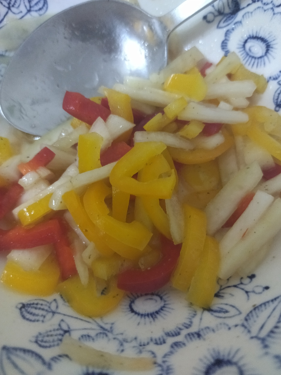 Вот вроде и уснула вечером быстро, и ночью хорошо спала, а весь день была вареная какая-то 🥴 Встать встала, а проснуться не проснулась 🤷♀️ На завтрак пожарила яичницу с остатками вчерашнего салата из кабачков из перца. Не "зашел" он мне, поэтому бросила его на сковородку, чуть обжарила, сверху разбила яйца и вуаля! Вкусный завтрак готов. Кофе заварила покрепче, но и это не помогло проснуться. Поэтому всех проводила, достала из морозилки фарш, запустила стирку и легла. Думала подремать, но не вышло... Поднялась, сходила в пункт выдачи Вайлдберриз - забрала заказ, зашла в магазин за хлебом. Но и свежий прохладный воздух меня не разбудил. Вернулась домой, встретила старшую дочку из школы, пообедали и снова прилегла. Но и эта попытка поспать не увенчалась успехом - крутилась, вертелась, читала книгу и Дзен... И главное, спать-то хочу, но не могу. Пока вертелась, уже и за младшей в садик пора. На обратном пути немного погуляли. Погуляли бы много, но я замерзла🥶 и мы пошли домой. На