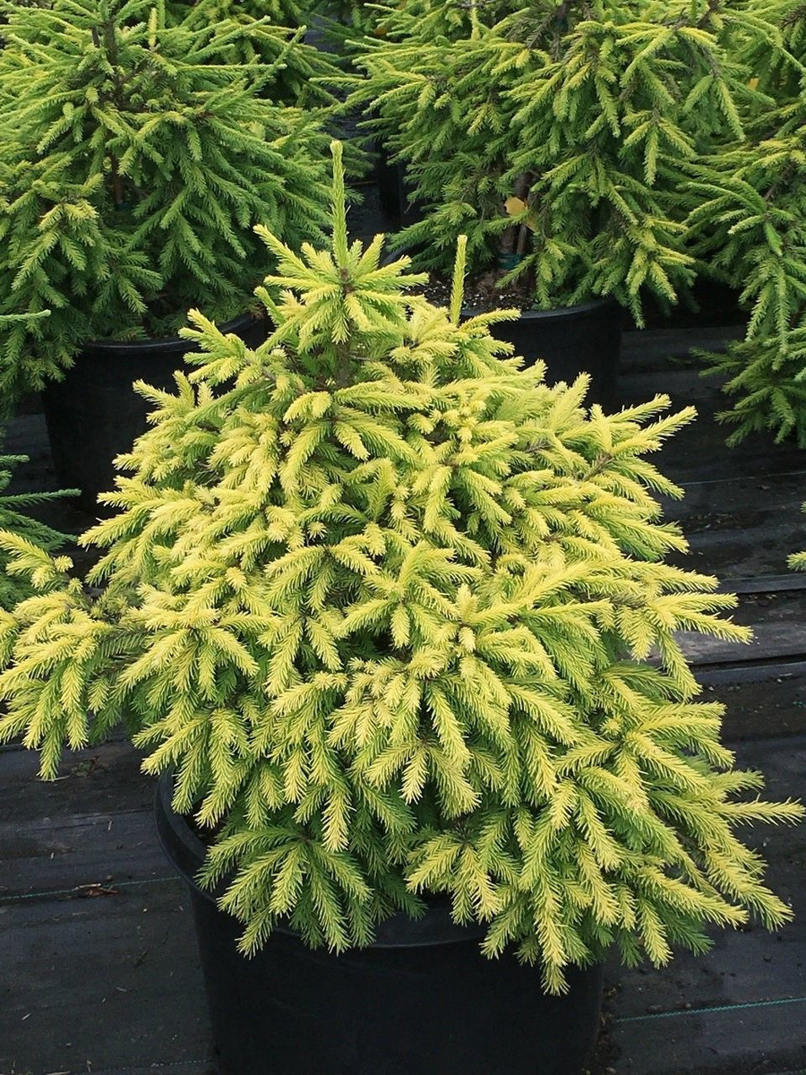 Это прекрасный сорт ели, выведенный американским селекционером Бобом Финчемем, который сочетает в себе черты сортов Акрокона и Голд Дрифт. Этот сорт получил свое название благодаря яркой окраске хвои, которая сохраняет свой яркий лимонный оттенок круглый год, даже зимой.