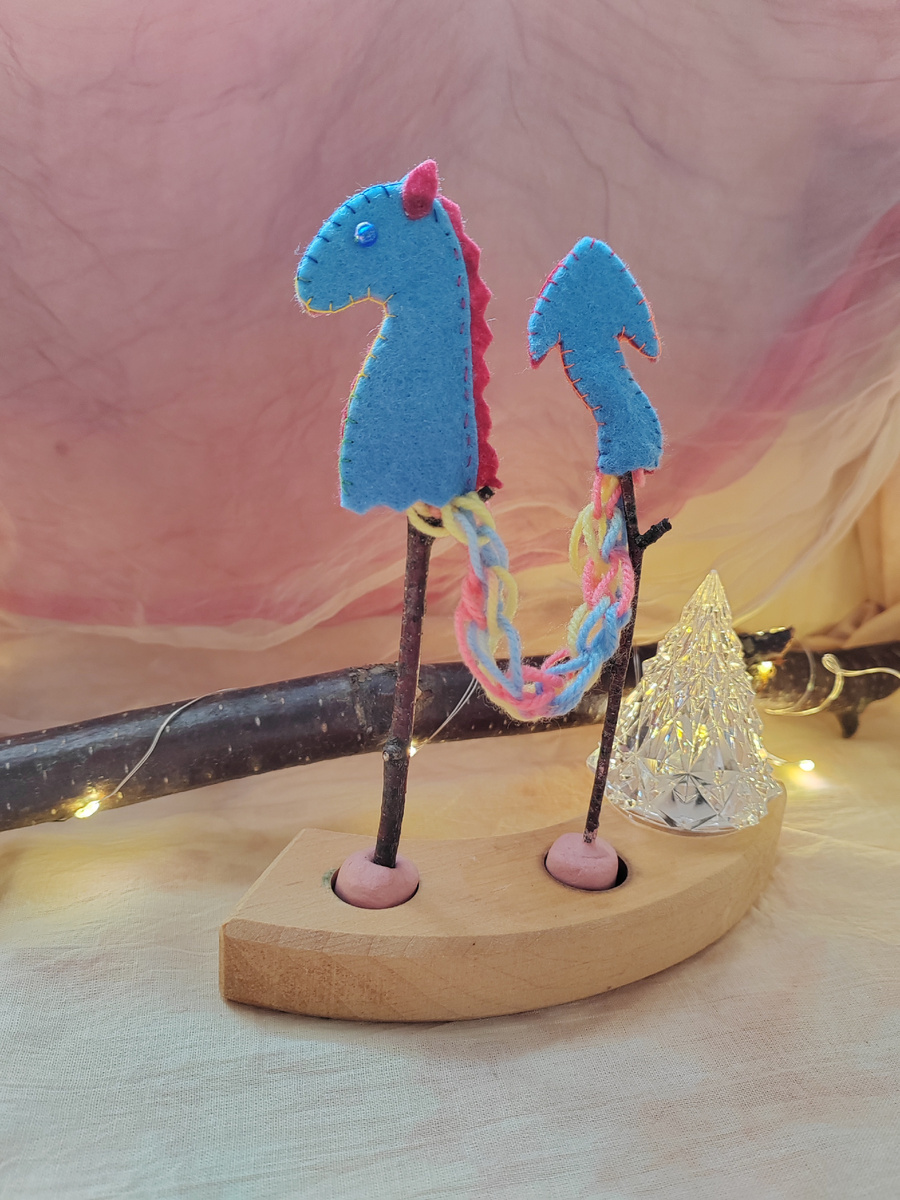 Делюсь этапами работы над таким дракончиком. Им можно эффектно играть или просто сделать украшением столика времён года в октябре 🐲 1) нарисовать детали сначала на листе, потом перенести на фетр; 2) всё вырезать, подрезать края фигурными ножницами; 3) пришить глаза и ушки; 4) сшить детали; 5) на трёх пальцах связать шнур (один короткий, а второй больше 50 см). Как вязать на пальцах показала здесь; 6) завязали концы шнура на палочках и надели голову и хвост на них. Драконом с длинным шнуром и палочками от суши удобно играть: он может летать. А дракона с маленьким шнуром можно поставить на столик времён года. Ещё больше идей для творчества с детьми сохраняю здесь.