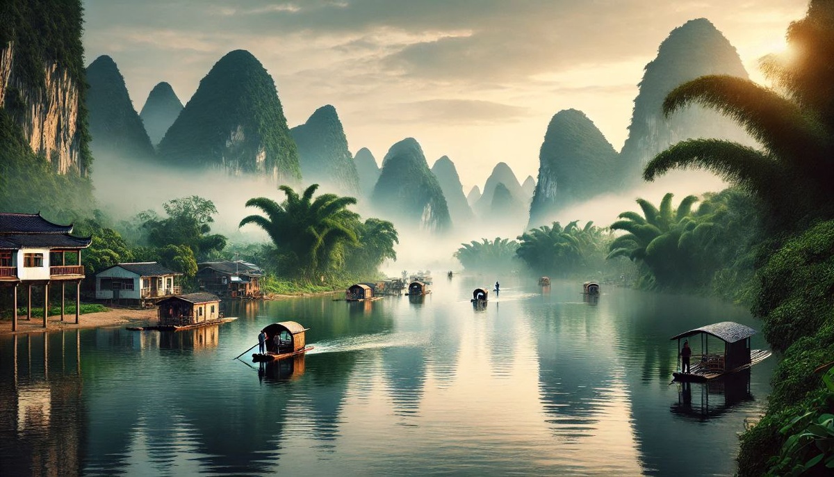 Представьте себе, как ранним утром над гладью реки медленно поднимается туман, скрывая скалы и деревья, словно мир вокруг вас вдруг перенёсся в другое измерение. Вода будто отражает саму душу Китая, а очертания гор — карстовые пики, сформированные миллионы лет назад — возвышаются над водой, как хранители древних секретов. Это река Ли, место, где природа, история и мифы соединились в одном невероятном пейзаже. Что делает это место таким притягательным? Секрет не только в красоте, но и в тайнах, которые река хранит. Местные жители рассказывают легенды, каждая из которых, кажется, оживает в утреннем тумане или вечернем свете заходящего солнца. Как будто сам воздух у реки Ли дышит тайной. Готовы услышать её шёпот? Предание гласит, что в одной из гор, окружающих реку, когда-то жил дракон — не просто дракон, а могущественное существо, которое обладало волшебной жемчужиной, дарующей силу управлять стихиями. Однажды к нему пришёл военачальник с огромной армией, чтобы захватить этот чудесный а