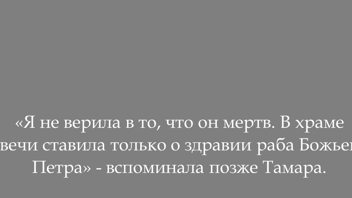 «Я не верила в то, что он мертв. В храме свечи ставила только о здравии раба Божьего Петра» - вспоминала позже Тамара.