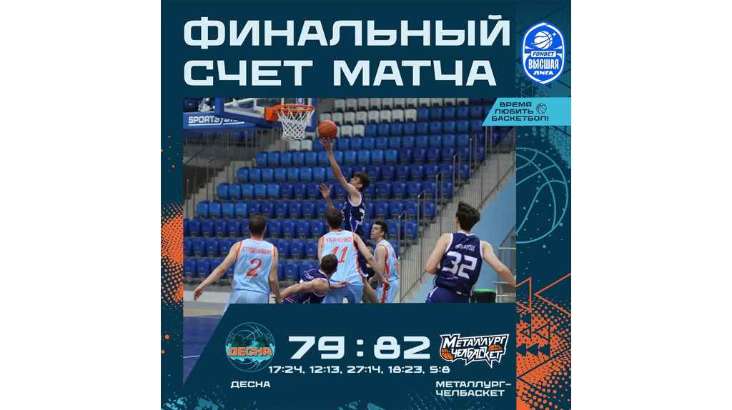 После вчерашнего поражения "Металлург-Челбаскет" обязан был реабилитироваться перед своими болельщиками. Сегодня, 28 октября, во Дворце единоборств «Металлург-Челбаскет» из Челябинска обыграл брянскую «Десну» со счетом 79:82. Сегодня из наших выделялись на площадке Даниил Глазов и Иван Мохнарылов, записавшие большую часть очков на свой счет. В четвёртой четверти до самых последних секунд у команд оставались равные шансы на успех, но финальная сирена зафиксировала равный счет на табло. Всё решал овертайм, в котором чуть меньше ошибок допустили гости, одержавшие важную победу. Следующие матчи "Десна" так же проведёт на своей площадке. Они пройдут уже 31 октября и 1 ноября. Начало матчей в 19:00. 6+ «Металлург-Челбаскет» взял реванш за вчерашнее поражение