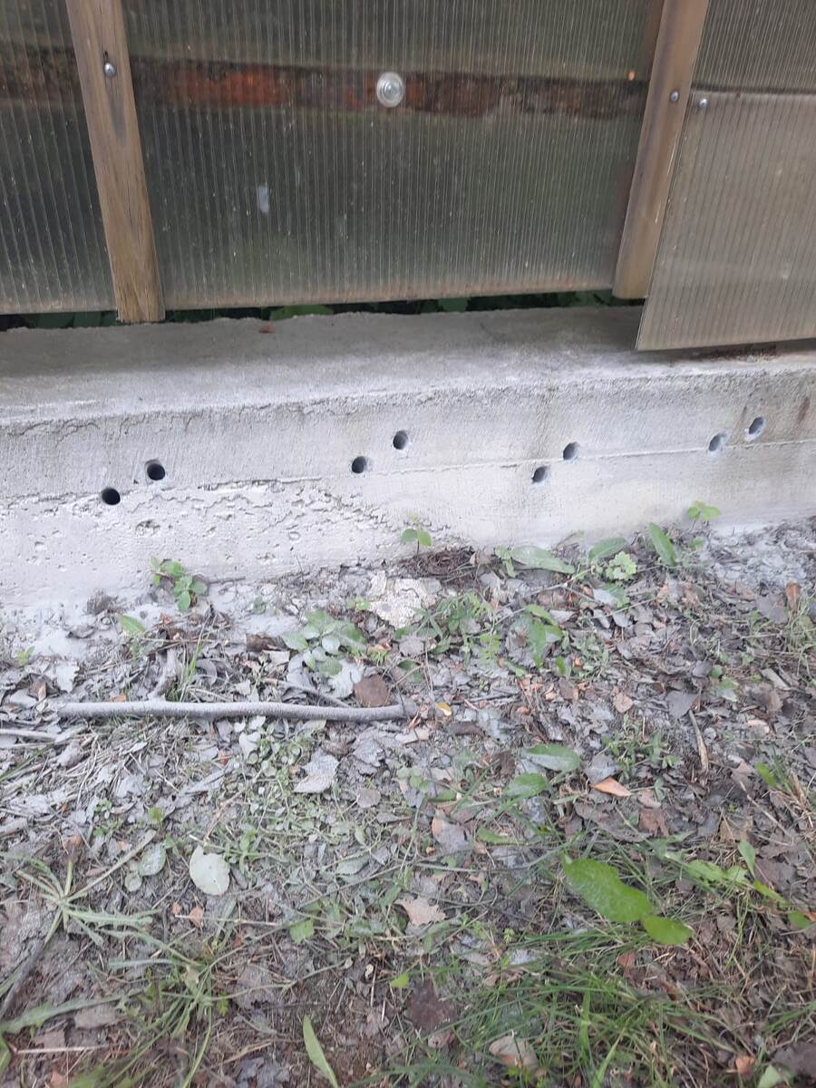 К нам обратился представитель Заказчика, у которого разрушался Бетонный фундамент забора. Фундамент заливали заводским бетоном марки В15 (М200), водонепроницаемость W4 (давление воды на глубине 30 метров), морозостойкость такого бетона F50 (50 циклов замораживания- оттаивания до начала разрушения). Казалось бы давление воды на такой глубине вызывает уважение, а на самом деле оно не велико 0,4 МПа (4 атм) и лабораторные испытания водой с таким давлением, длятся всего 16 часов. Поэтому бетон, особенно на «полке» фундамента, где вода копится во время дождя и таяния снега , подвергается постоянному контакту с водой и замораживается – оттаивает, каждую весну по 50 циклов. Заказчику было предложено 2 действия по защите: 1. Повысить водонепроницаемость и морозостойкость существующего бетона, для исключения капиллярного подсасывания из грунта, с применением гидроизоляции ARENA InMix PN проникающего типа (Повышение водонепроницаемости не менее чем на 3 ступени до W10 (1Мпа- 10 атм)). 2. После
