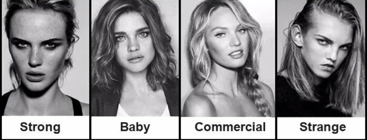 Commercial face-название типажа говорит само за себя! Это один из самых востребованных типажей , т.к. он больше и легче «продаваемый» для заказчика. Такие девушки востребованы как для съемок, так и для показов, конкурсов красоты и тд. Именно коммерческие типажи мы чаще всего видим в рекламах, на баннерах.