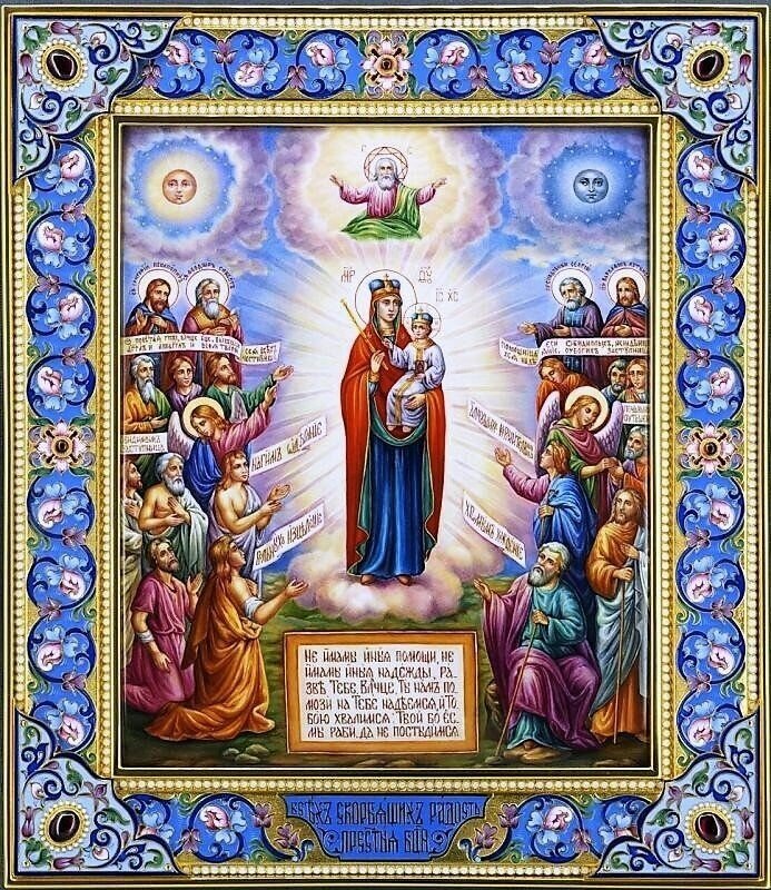 Этот образ прославился в конце XVII столетия. Перед иконой исцелилась родная сестра Патриарха Московского Иоакима, Евфимия Папина. Евфимия тяжело заболела и много молилась Пречистой Богородице, прося Её о помощи. И однажды во время молитвы она вдруг услышала: " Евфимия, в храме Преображения Сына Моего есть Мой образ, именуемый "Всех скорбящих Радость", он стоит на левой стороне, где обычно становятся женщины. Попроси священника из этой церкви отслужить молебен с водосвятием перед этим образом и ты получишь исцеление." Евфимия узнала, что действительно в храме Преображения Господня есть такой образ, и находится он там, где и указала Пречистая. Женщина попросила священника отслужить молебен, освятить воду, и после этого она почувствовала себя лучше, а позже и совсем исцелилась. Это событие произошло 6 ноября, с тех пор этот день - день почитания иконы Божией Матери "Всех скорбящих Радость". После этого от молитвы перед этим образом происходило ещё много чудотворений. Вот молитва Пресвято