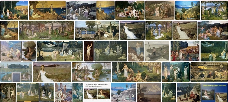 Не согласитесь ли, что символист Пюви де Шаванн, иногда доводивший, скажем, синь моря до черноты, а цвет тела - до почти белизны, - что могло б означать как бы уже-достижение (от отчаяния из-за недостижимости) идеала благого для всех сверхбудущего, - всё же уступает в насыщенности красок символисту же Анцифельду, работавшему полвека спустя. Если да, и если поверить, что и через полвека можно быть искренним в таком идеале, то, может, влияет тот факт, какие пертурбации застали художники? Анисфельд – аж мировую войну и две революции, одна из которых – величайшая. А Пюви де Шаванн – тоже войну и революцию, но не такие потрясающие. 21 октября 2024 г.