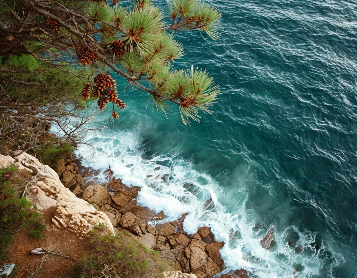 На морском берегу, высоко над морем. На скале, нависающей над прибоем, резвился морской бриз. Он играл семечком сосны. Перекидывал его с одной воздушной руки своей на другую. И семечко послушно повиновалось его теплым рукам…