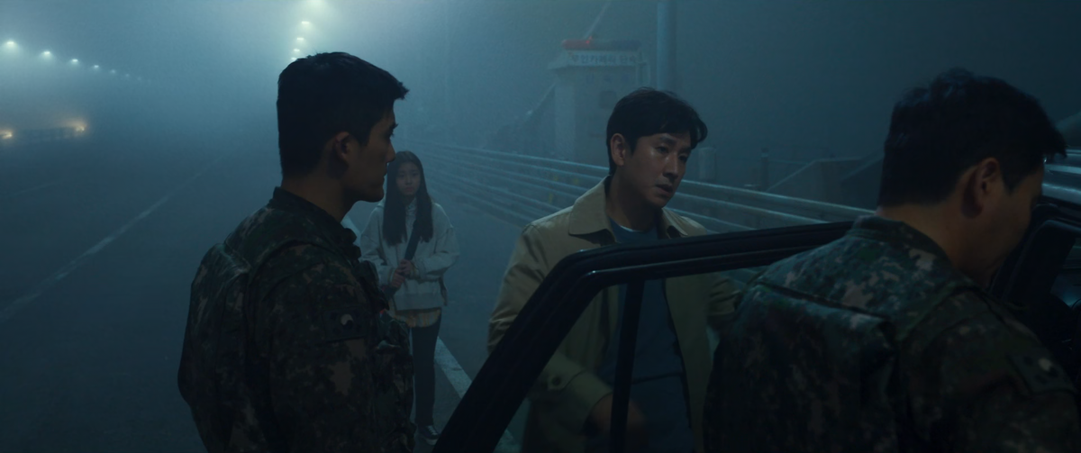Фильм "В тумане" представляет собой смесь хоррора и триллера, погружающую зрителя в атмосферу постоянного напряжения и неопределенности. Действие разворачивается на подвесном мосту, который становится сценой для цепочки катастрофических событий. Фильм предлагает динамичное повествование, сочетающее элементы выживания, научных экспериментов и человеческих конфликтов, что держит зрителя в состоянии тревожного ожидания. Несмотря на ряд технических недостатков, таких как не всегда удачные спецэффекты, фильм выделяется среди жанровых аналогов благодаря своей атмосфере. История начинается с поездки отца и дочери — Ча Джон-вона и Ча Кён-мин — к аэропорту. Джон-вон, амбициозный политический советник, отправляет дочь на учебу за границу, что символизирует его попытку сосредоточиться на карьере, но в то же время выдает его недостатки как отца. Однако их планы резко меняются, когда на мосту происходит крупная авария с участием множества автомобилей. Среди них оказывается машина, перевозящая секре