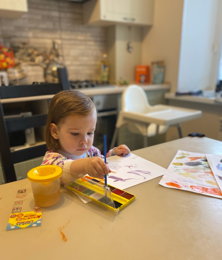 Варя рисует за столом, альбом заканчивается. Василиса (ей ещё нет двух лет) играет рядом. Варя просит: - Мама, дай мне бумажку. Маленькая Вася вскакивает и куда-то убегает, пока я иду доставать чистые листы. Возвращается через минуту с истерзанным рулоном туалетной бумаги: - Вая! Дейжи скаее! [Варя, держи скорее]. Сестринская забота.