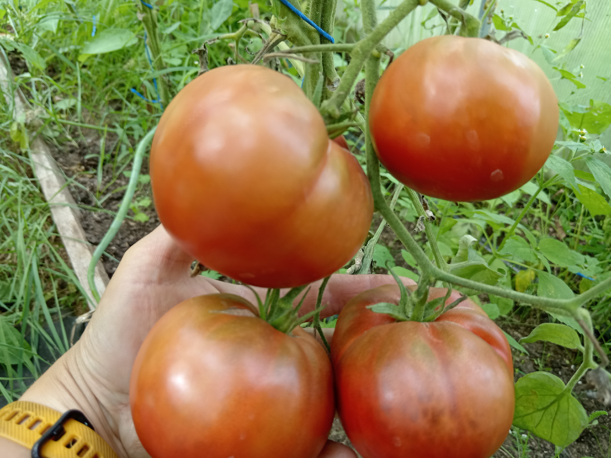 Доброе утро, дорогие друзья. Сегодня хочу поделиться с вами прекрасным сортов томата типа Биф. Это томат «Черное сердце от Борисовны». Эти помидоры выращивала в 2024 году в первый раз в теплице. Решила поделиться с вами результатом по окончании сезона. Биф томат отличается от других мясистых томатов рядом преимуществ: Биф томаты отличаются от других мясистых томатов тем, что у плодов сочная, мясистая мякоть. И при этом помидоры сладкие за счет повышенного содержания сахаров, сухого вещества в плодах. Рассаду посеяла в начале марта 2024 года. В теплицу на грядки рассаду высадила в мае. Этот сорт томата среднеспелый и уже в конце июля начали созревать плоды. Растение в теплице выросло мощное с толстым стеблем. Высота куста достигла 2 метров. Куст формировала 2 стебля и обязательно подвязывала шпагатом к шпалере. На упаковке с семенами заявлено, что помидоры вырастают массой 200-500 граммов. На кусте в первых двух кистях помидоры выросли больше 500 граммов. В остальной части куста пом