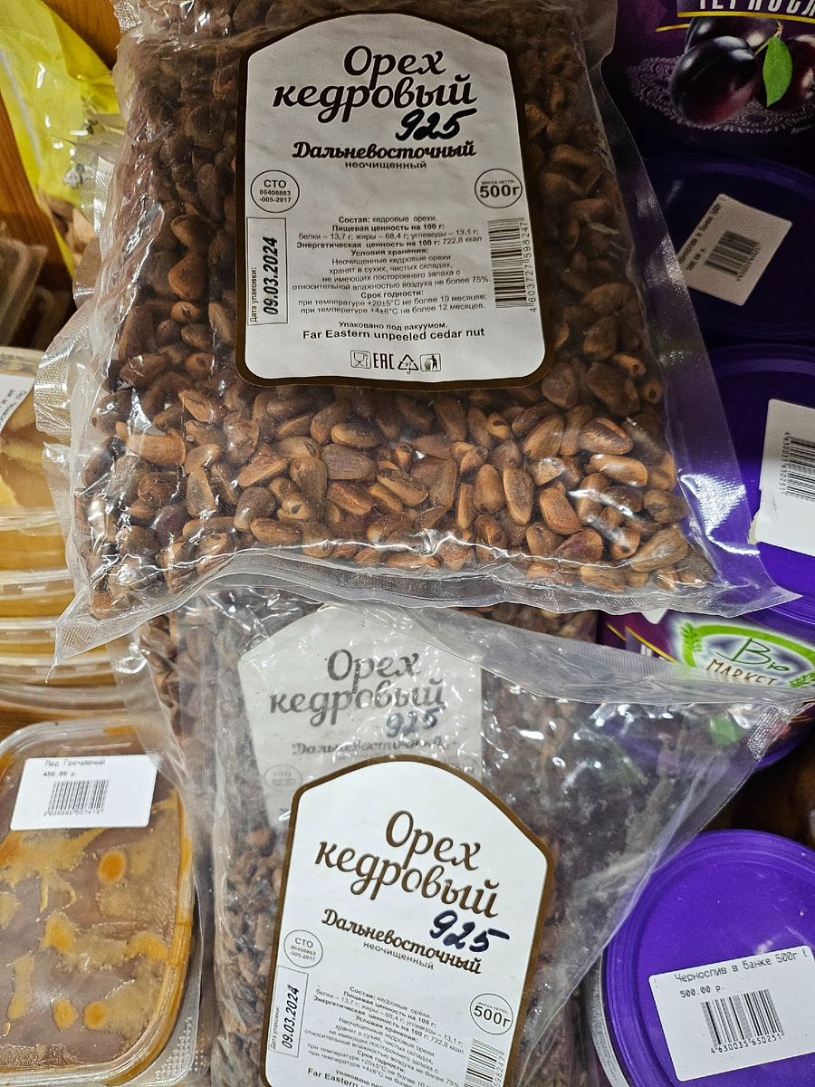 Вообще, настоящие кедровые орехи не съедобные. А то, что мы привыкли называть кедровыми орехами на самом деле семена нескольких видов сосен. Кедр вообще не растет в России. Повторюсь, все это сосны. Это все с точки зрения ботаники. Но так исторически сложилось, что эти семена называют кедровыми орехами, поэтому и мы тоже будем. Кедровые орешки богаты витаминами группы B, витаминами А, E и K. Содержат достаточное количество железа, фосфора, цинка, магния, меди и марганца. Еще они содержат 19 аминокислот. 8 из них организм человека не способен синтезировать самостоятельно, но они необходимы для мышц, связок, кожи и сухожилий. Это лейцин, изолейцин, лизин, метионин, треонин, триптофан, валин, фенилаланин. Кедровые орехи оказывают благоприятное действие на здоровье сердечно-сосудистой системы, снижение уровня сахара и холестерина в крови. Всего 30 г кедровых орехов покрывают 109% суточной нормы марганца, который снижает риск развития диабета. А ещё, в 100 г продукта содержится 34,1 г Ом