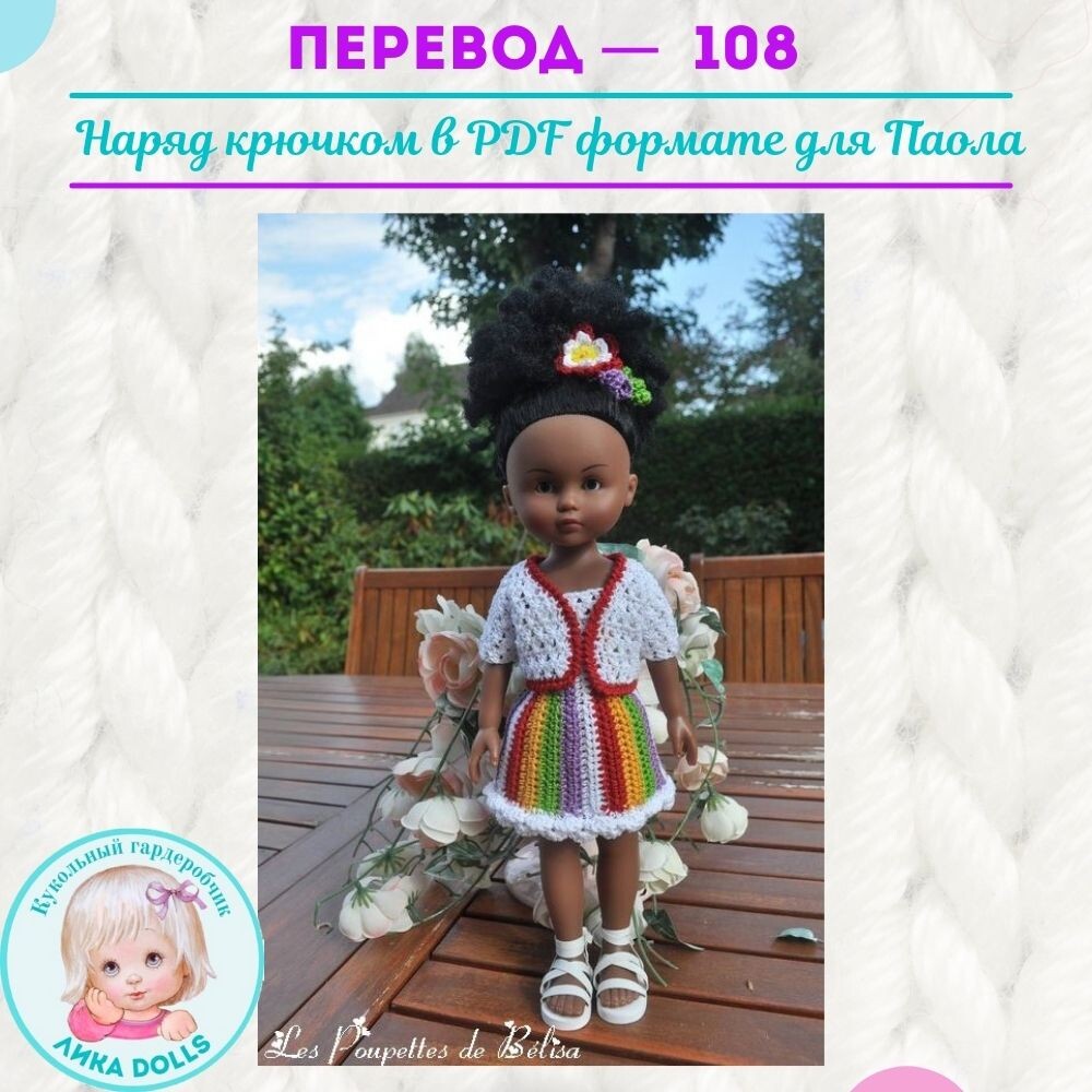 Материалы: Пряжа хлопок – 5 оттенков: белый, красный, желтый, зеленый, фиолетовый; Крючок № 2,5 мм; пуговицы. Условные обозначения: в.п. – воздушная петля в.п.п. – воздушная петля подъема сбн – столбик без накида ссн –столбик с одним накидом пссн –полустолбик с одним накидом проп.п. – пропустить петлю след.п. – следующая петля скр.ссн–скрещенный столбик с одним накидом, он состоит из двух ссн, перекрещенных между собой и вязать его так: пропустить одну петлю, первый ссн в следующую петлю, второй ссн в пропущенную петлю. Платье Юбка Набрать 25 в.п. нитью белого цвета. 1 ряд: 2 в.п.п., 15 пссн, 10 сбн, поворот 2 ряд: 1 в.п.п., 10 сбн, 15 пссн, поворот Дальше вязать, повторяя 1 и 2 ряды всего 20 раз, меняя цвета пряжи. Закончить 2 ряда белой нитью. Всего должно получится 42 ряда. В конце 42 ряда соединить обе стороны соединительными столбиками только то место, где вязали 15 пссн и продолжить вязать 1 ряд сбн по одной стороне, сделав две петли для пуговиц из 2 в.п. Далее обвязать верхний к