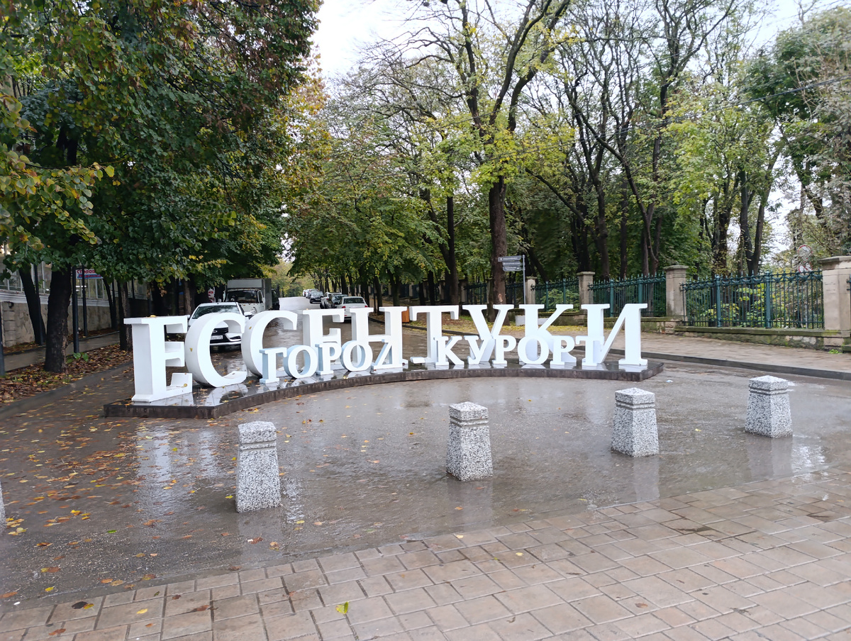 Первый день по прилёту всегда немного скомканный. Во-первых, рано вставать, мой рейс, вообще, был в 5-40. Во-вторых, заселение в два часа, даже если номер приготовят немного раньше, нужно где-то болтаться это время, вместо того, чтобы сначала отдохнуть. Ну и так далее. Я добралась из аэропорта до отеля на Яндекс-такси. За 1400 с копейками. Пять лет назад до Кисловодска 800 рублей стоило, но когда ж это было. Цены неостановимо летят вверх. Оплатила номер, оставила вещички и отправилась гулять. А погодка была на диво). Пока ехали - сыпал обильный снег, но быстро перешёл в дождь. Хорошо, что взяла зонт. Отправилась я в Курортный парк, где было безлюдно и весьма романтично. Парк понравился. Он, конечно, совсем не похож на кисловодский, ну а почему он должен быть похож? Я мысленно его назвала «Парк для променадов». Все ухожено, чисто, приятно. Понравилась плитка в природном цвете, сливающаяся с опавшей листвой. Ненавязчивые, но очень искусные цветочные вставки из невообразимых хризантем-му