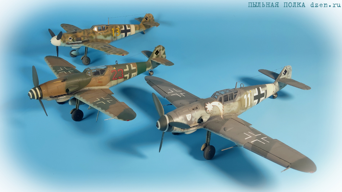 Модель И-16 по сравнению с этой винтокрылой машиной проста до чрезвычайности, посему было принято решение строить сразу три модели разных производителей. Такое практиковал в юности, когда ещё был коллекционером. Штука, кстати, чрезвычайно интересная, можно сравнить подходы к реализации одинаковых задач разными компаниями. Это три "худых" из прошлого века от Фуджими и "Хаси" которые делались одновременно. Свастику, естественно, долой.