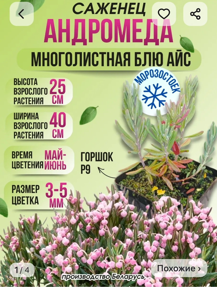 Андромеда многолистная Блю Айс - вечнозеленый миниатюрный кустарник 30-40 см высотой.