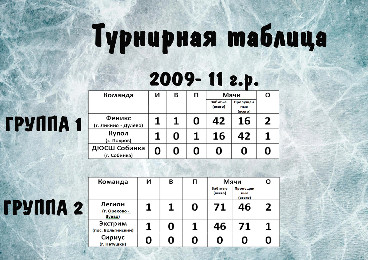 В группе 1 в предстоящие выходные также запланирован один матч. Встретятся команды «Феникс» и ДЮСШ Собинка. Эти команды сыграют 26 октября.