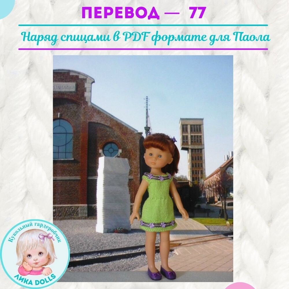 Материал: Пряжа 50гр/125м (100% акрил); Спицы № 3,0 мм; пуговицы; украшения. Способы вязания: лицевая гладь - лицевые ряды – лицевые петли, изнаночные ряды – изнаночные петли. платочная вязка - все ряды лицевые петли. лиц. – лицевая петля. изн. – изнаночная петля. 2вм.изн. – провязать 2 петли вместе изнаночной 2вм.лиц. – провязать 2 петли вместе лицевой Кромочные петли в описании не указаны. Платье Набрать 60 петель. Вязать 4 ряда платочной вязкой. Вязать 5 рядов лицевой гладью. Следующий изнаночный ряд, вязать лицевыми петлями. Продолжить вязать 17 рядов лицевой гладью. В 18 ряду сделать 20 убавок следующим образом: - 1 изн., *2вм.изн., 1 изн.* - повторять до конца ряда, 2 изн. (40п.) Вязать 12 рядов лицевой гладью. Следующий ряд: 9 лиц., закрыть 3 петли, 16 лиц., закрыть 3 петли, 9 лиц. Следующий ряд: 9 изн., набрать 10 петель, 16 изн., набрать 10 петель. 9 изн. Следующий ряд: лицевые петли. Следующий ряд: изнаночные петли. Следующий ряд: 8 лиц., 2вм.лиц., 8 лиц., 2вм.лиц.,