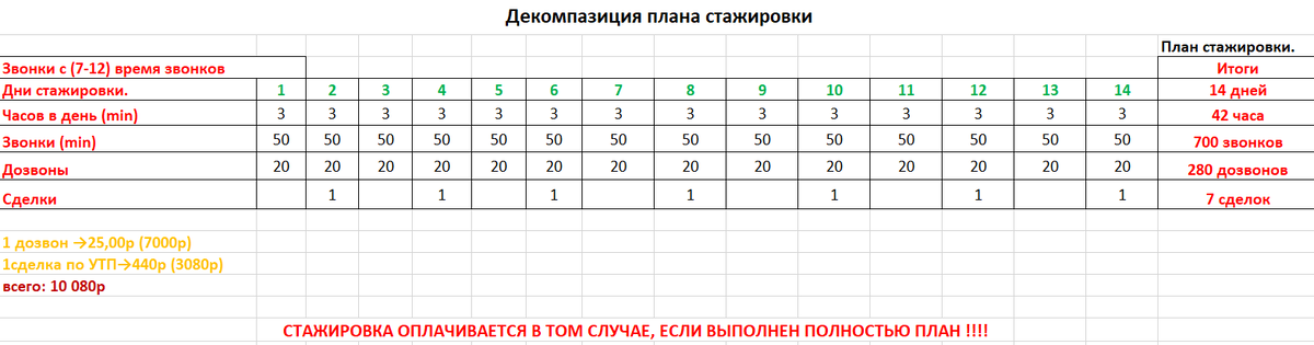 Инструкция по декомпозиции плана по практике ( стажёрам лидогенераторам, затем менеджерам по продажам).