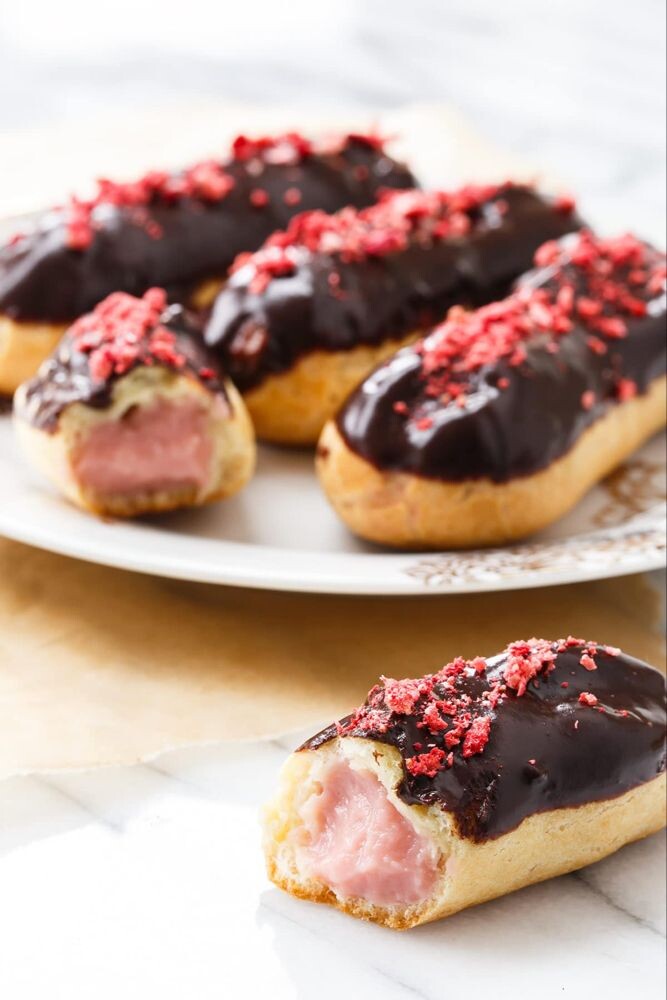 Эклеры с малиной и шоколадом