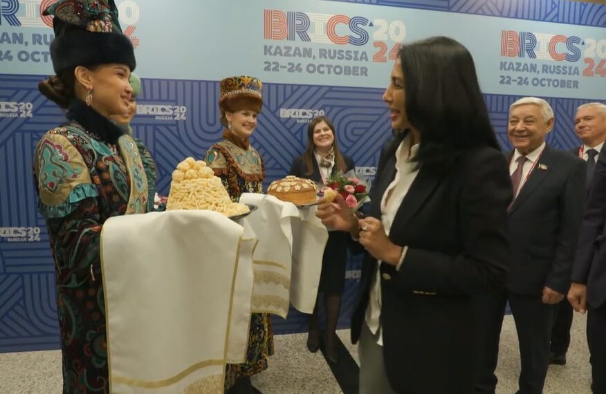 Первый заместитель министра иностранных дел Шри-Ланки Аруни Виджевардане прибыла в понедельник в Казань для участия в саммите БРИКС. На кадрах члены делегации РФ приветствуют политика и вручают ей букет цветов. Также на видео замминистра пробует каравай и национальное татарское блюдо — чак-чак. Саммит глав государств — членов БРИКС пройдет в Казани с 22 по 24 октября. Ожидается, что мероприятие посетят лидеры 23 стран, в том числе ближайшие соседи России, а также партнеры по Евразийскому экономическому союзу и Содружеству Независимых Государств. C 1 января 2024 года Россия председательствует в БРИКС. С начала года полноправными членами организации стали пять стран: Египет, Иран, ОАЭ, Саудовская Аравия и Эфиопия. По словам замглавы МИД РФ Сергея Рябкова, все форматы, в которых участвуют государства, не входящие в объединение, включены в общее определение «БРИКС плюс».