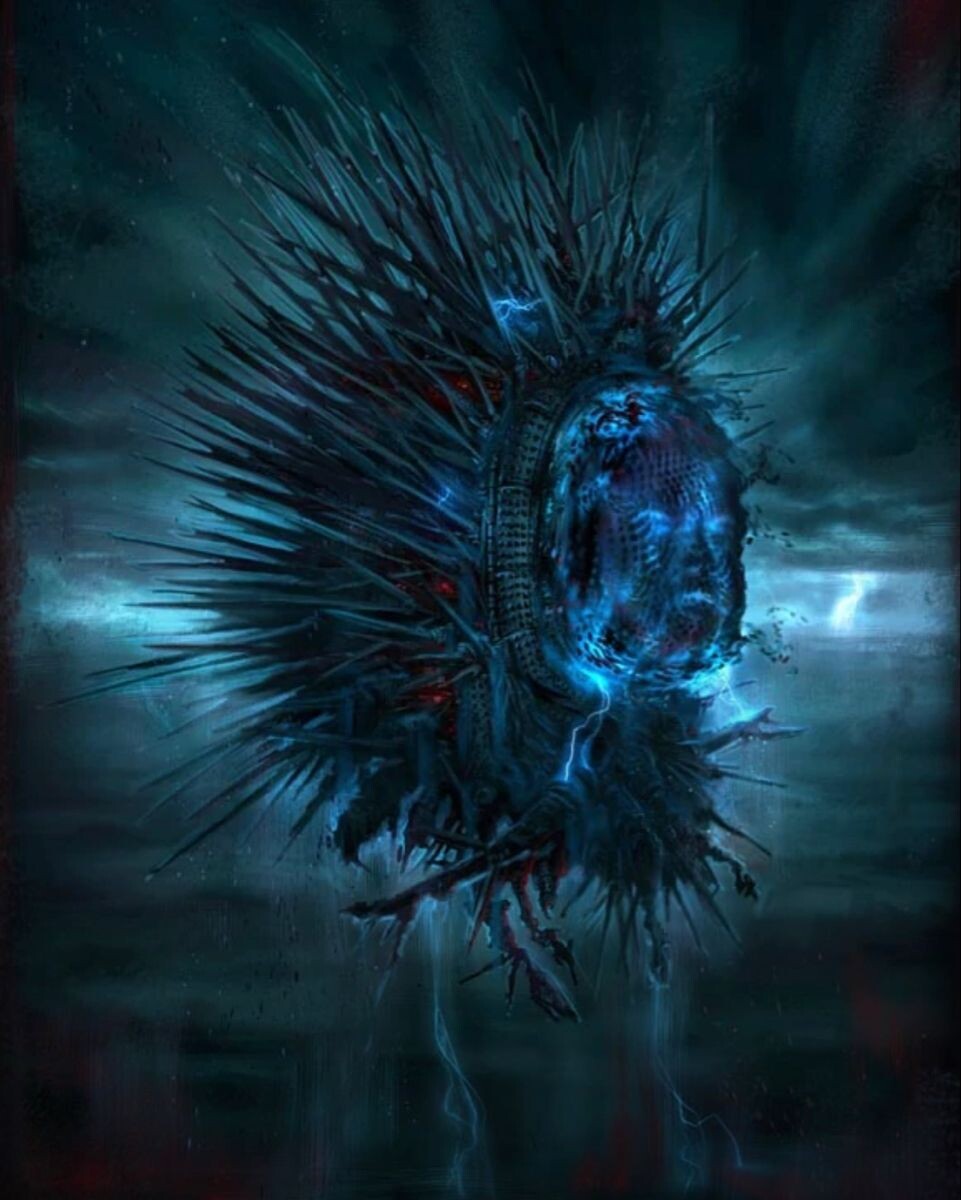 Само тело существа представляет собой огромный полусферический шар, покрытый сотнями длинных шипов и оснащённый множеством отверстий, из которых и выходят те самые машинки, составляющие его лицо.