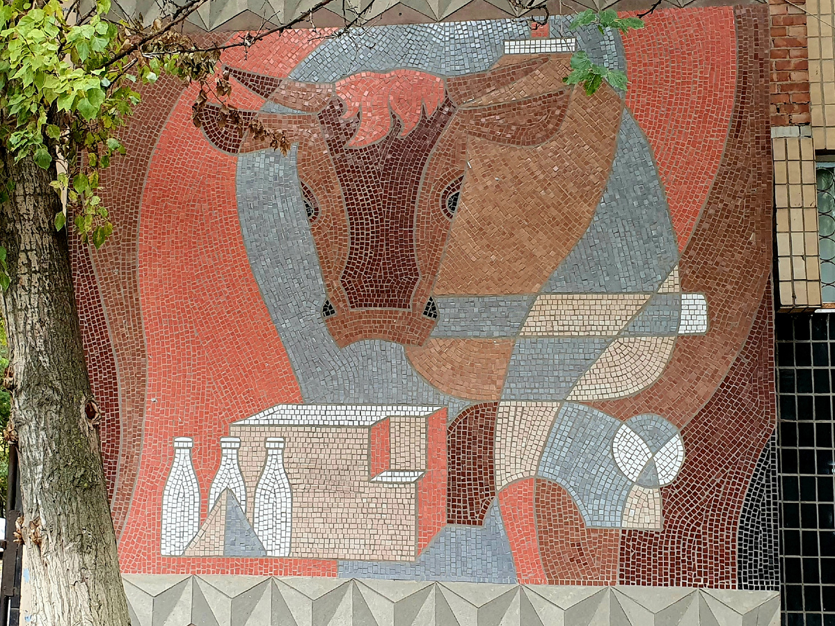 В Волгограде на Рабоче-Крестьянской улице, 44, всё ещё живёт и дышит история — бодрая и добродушная корова из мозаики, встречающая прохожих своим вечным, радушным взглядом. Она пережила время и множественные перемены в обличии здания, которое ныне стало пристанищем для офисов небольших компаний, но когда-то было сердцем Волгоградского молочного завода.