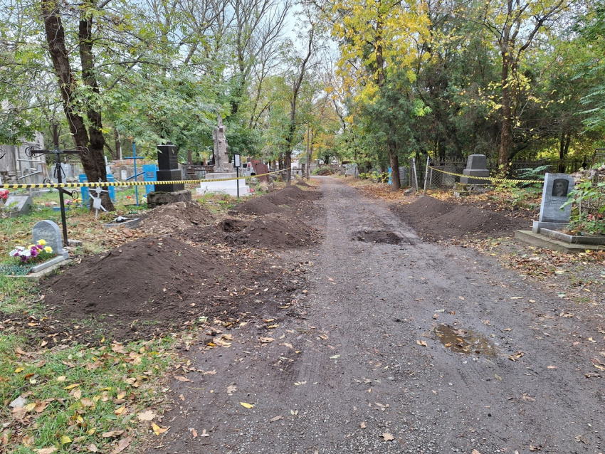 Во первых - новые захоронения на главной аллее. Они - ненастоящие, и нужны для съемок фильма: После окончания киноработ они исчезнут без следа. Работы идут аккуратно, а земля - привезенная.
