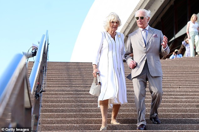 На третий день своего визита в Австралию король и королева Камилла вернулись в Сидней. Одним из пунктов программы этого дня было посещение площади перед Сиднейским оперным театром, чтобы отметить 50-летний юбилей этого культового места. Их встретили, по сообщениям прессы, более восьми тысяч человек. У театра королевскую чету приветствовали премьер-министр Нового Южного Уэльса Крис Миннс и его жена Анна. Они также встретились с председателем правления Оперного театра Майклом Макдэниелом, его генеральным директором Кья Блондин и артистами, включая британскую актрису Джоанну Ламли, у которой там сейчас проходит шоу. По поводу знаменательного события перед королевской четой выступили с концертной программой дети. Они, похоже, получили большое удовольствие от этой встречи. Впрочем, как и король. Их Величества позировали на фоне знаменитого сиднейского моста Харбор-Бридж. И расписались в книге посетителей Оперного театра. Затем они под бурные аплодисменты поднялись по ступенькам наверх и п