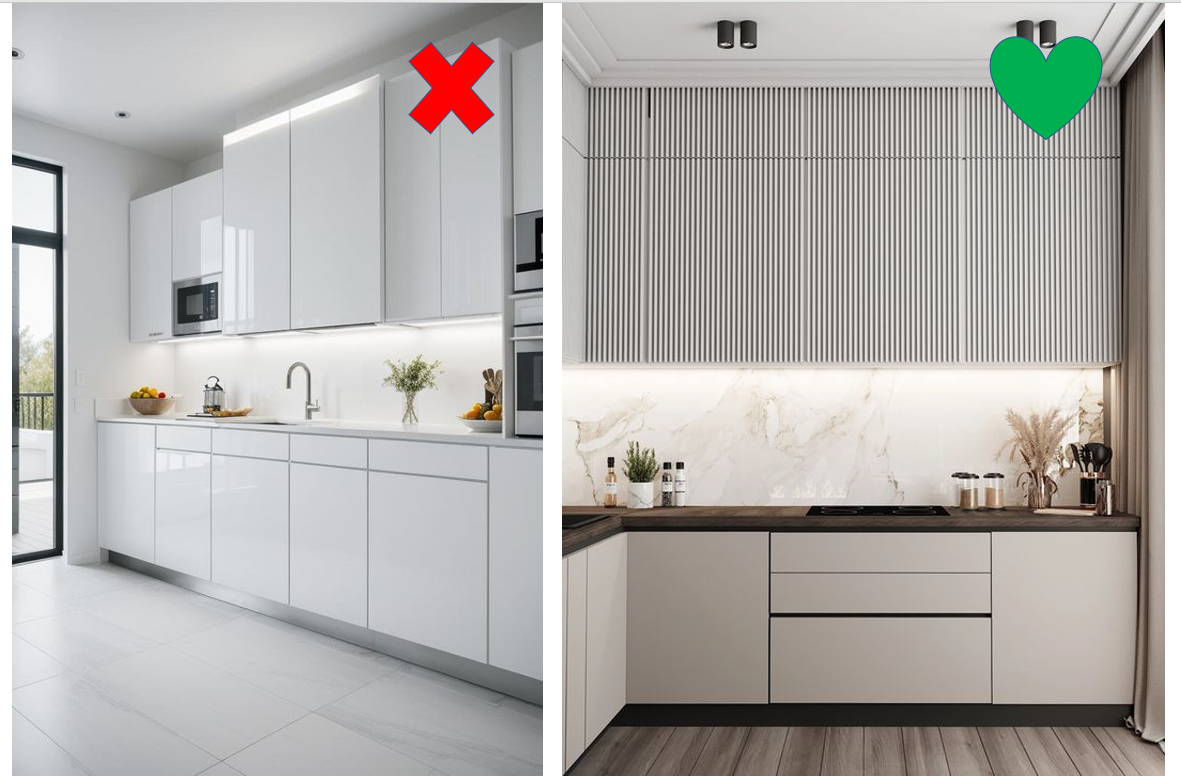 Мода на кухонные интерьеры меняется так же быстро, как и тенденции в одежде. Некоторые элементы, которые еще недавно считались стильными, сегодня смотрятся устаревшими и неудобными. В этой статье мы расскажем о 6 неактуальных решениях в дизайне кухни, которых лучше избегать. Несколько лет назад глянцевые фасады кухонных шкафов были на пике популярности. Однако сегодня их популярность стремительно снижается. Причина проста: за такими поверхностями сложно ухаживать. Пятна, отпечатки пальцев и разводы легко появляются на глянце, и их сложно убрать, особенно если кухня активно используется. Если хочется добавить блеска в интерьер, выбирайте матовые поверхности или фасады с легким сатиновым блеском – они выглядят современно и требуют гораздо меньше ухода. Белые кухни долгое время ассоциировались с чистотой и минимализмом. Однако в 2024 году этот тренд стал считаться слишком холодным и однообразным. Чисто белая кухня выглядит стерильно и часто требует большего ухода: заметна каждая капля, кр