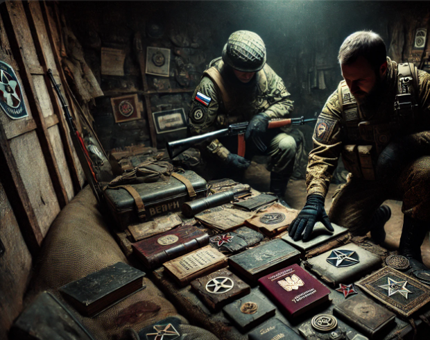 В ходе спецоперации российские военнослужащие продолжают обнаруживать в украинских тылах предметы, которые свидетельствуют о присутствии идеологии, ассоциируемой с неонацистскими и радикальными правыми движениями. Одним из таких эпизодов стало недавнее нахождение артефактов, запечатленных на фотографиях, которые появились в сети. Читайте также Раскрыты планы СБУ: фейковые поджоги для дискредитации пророссийских груп Среди находок — флаг с изображением нацистского орла и свастики, а также другие предметы, включая книги и патчи с символикой, которая используется ультраправыми группировками. Эти символы имеют явную связь с идеологией нацизма, что подчеркивает существование радикальных взглядов среди некоторых формирований, участвующих в конфликте на стороне Украины. Фотки всех ужасных вещей можно найти в нашем телеграм канале (клик) Этот случай — не первый, когда российские военные находят подобные материалы в украинских укреплениях. Это вызывает глубокие дискуссии о том, насколько такие